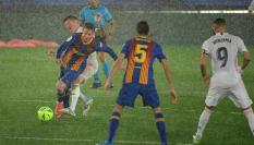 Un diluvio ha caído sobre Madrid durante la disputa del Real Madrid-Barcelona que se ha jugado en el Alfredo Di Stefano y que ha terminado con victoria blanca por 2-1.