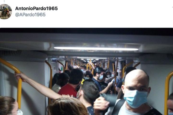 Hacinamiento en el Metro de Madrid en pleno miedo a los rebrotes.TWITTER: APRADO1965