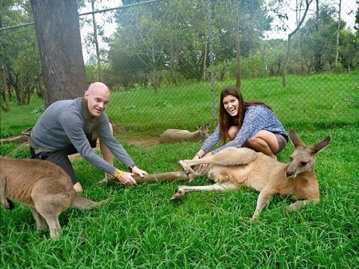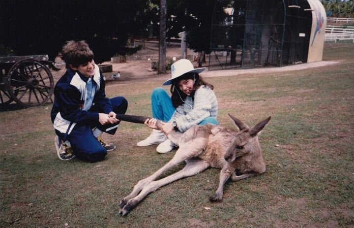 Lo entiendo. Lo entiendo perfectamente, y Cameron también. Como madre soltera, mi madre ahorraba todo lo que podía de su sueldo de profesora y nos llevaba de mochileo todos los veranos. Nuestro viaje favorito fue a Australia. Nos hizo una foto a mi hermano y a mí en el Santuario Lone Pine de Brisbane, y en la foto salimos fingiendo que le tirábamos de la cola a un canguro. Años después, mi marido y yo hicimos con nuestros hijos el mismo viaje a Australia, visitando todos los lugares en los que habíamos estado con mi madre. Quedamos con mi hermano en Brisbane y recreamos la foto en el Santuario Lone Pine fingiendo que le tirábamos de la cola al canguro.