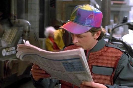Se supone que en 2015 íbamos a tener gorras, y ropa en general, psicodélica y estrambótica. La gorra con la que Marty llega a 2015, o sea, hoy, también tiene una réplica a la venta en Amazon.