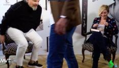 No ha sido el caso de uno de ellos que, tras quitársela, le ha resultado conocido a Bosé y se ha levantado de su silla para saludarle efusivamente con una abrazo.