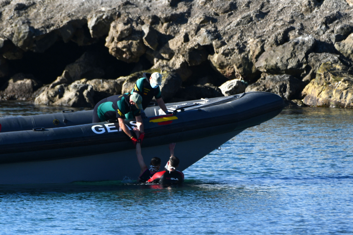 Durante la tarde, agentes del servicio marítimo de la Guardia Civil se han tenido que lanzar al agua en varias ocasiones para rescatar a algunas personas que intentaban llegar a Ceuta a nado con dificultades. En el lado marroquí todavía permanecen centenares de personas que quieren entrar en la ciudad.