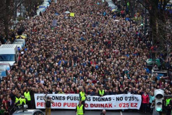 Una marea humana, con la participación de 115.000 personas, según fuentes municipales, ha recorrido esta tarde las calles de Bilbao para exigir unas pensiones públicas 'dignas' y decir 'no al 0,25%' de subida que aplica el Gobierno central. Los pensionistas, que han pedido la dimisión del presidente del Gobierno, Mariano Rajoy, han advertido de que seguirán adelante con las movilizaciones y se han mostrado convencidos de que van a 'ganar esta batalla'.