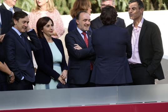 En la tribuna de invitados y autoridades se ha podido ver a los políticos compartiendo conversación antes de que llegaran Felipe VI y Letizia. Ha sido el caso del secretario general del PSOE, Pedro Sánchez, y el líder de Ciudadanos, Albert Rivera, quienes han estado un rato hablando antes del desfile. También se ha formado un corrillo en que han participado el expresidente Felipe González y los presidentes de Asturias, Javier Fernández; de Aragón, Javier Lambán; y de Andalucía, Susana Díaz.