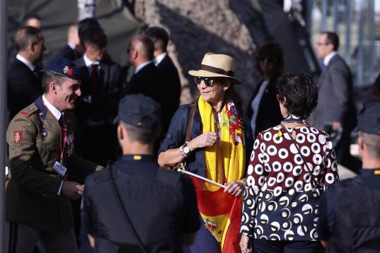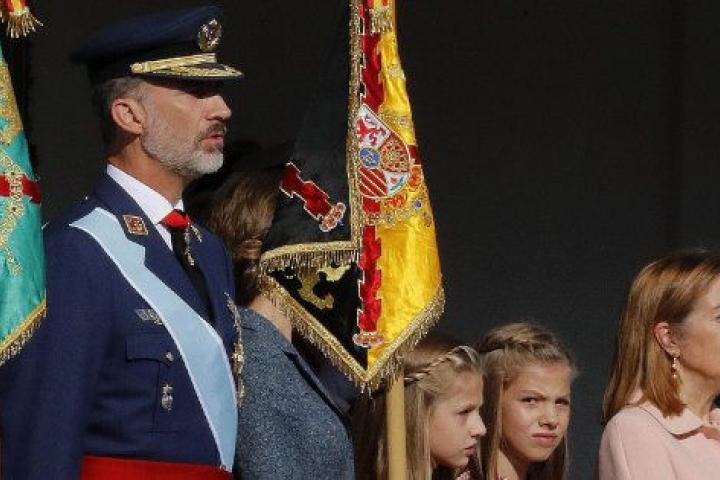 Los reyes, acompañados por sus dos hijas, han presidido un desfile marcado por el accidente de un caza del Ejército del Aire se estrella en Los Llanos (Albacete), en el que ha muerto el piloto.