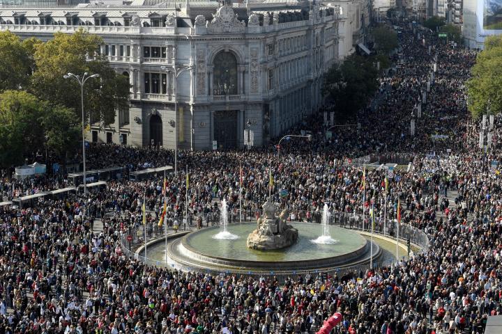 Así, ciudadanos de todas las edades, muchos de ellos personal sanitario, han comenzado a caminar en cuatro columnas que han partido desde Nuevos Ministerios (zona norte), Hospital de la Princesa (zona este), Atocha (zona sur) -la más numerosa― y Ópera (zona oeste). Hasta estos puntos han llegado autobuses organizados para trasladar a vecinos y cargos de diferentes municipios de la región.