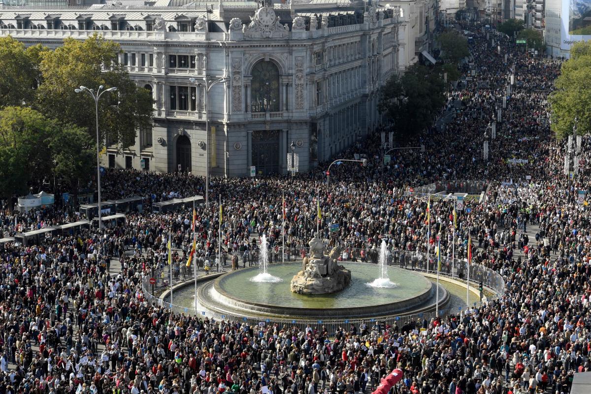 Más de 200.000 ciudadanos, según los datos oficiales de la Delegación de Gobierno, marchan este domingo en cuatro columnas que han partido este mediodía desde diferentes puntos de Madrid para confluir en Cibeles en un solo bloque de vecinos y barrios de la región que se ‘levantan’ en defensa de la Sanidad Pública.