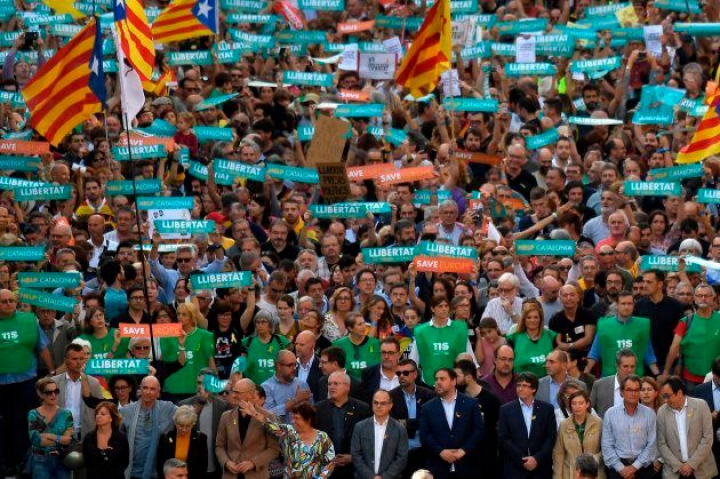 A la marcha ha acudido el Govern de la Generalitat al completo, liderado por el todavía presidente, Carles Puigdemont, y su 'número dos', el vicepresidente, Oriol Junqueras. También están la alcaldesa de Barcelona, Ada Colau; la presidenta del Parlament, Carme Forcadell, y el expresidente Artur Mas.