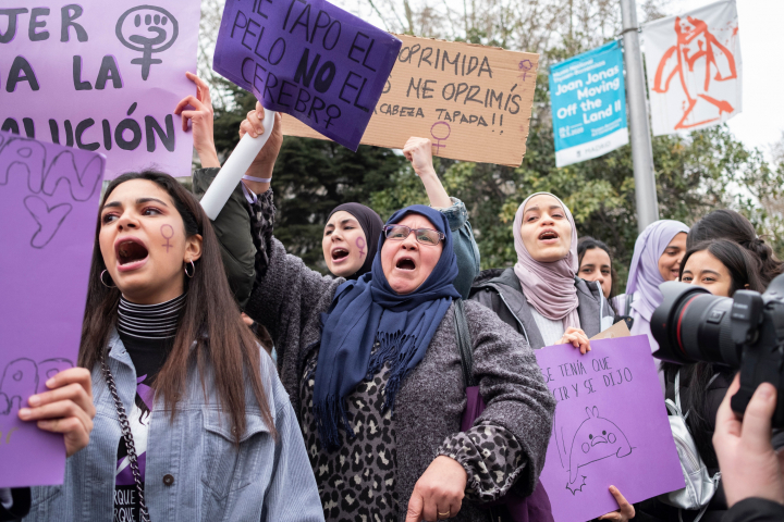 Minutos antes de que empezara la marcha, un grupo de batucada ha entonado el cántico feminista chileno “El violador eres tú”, que se hizo viral en todo el mundo a finales del año pasado.