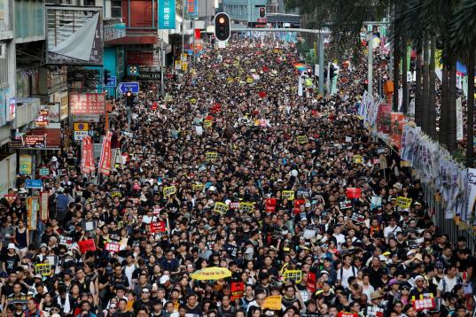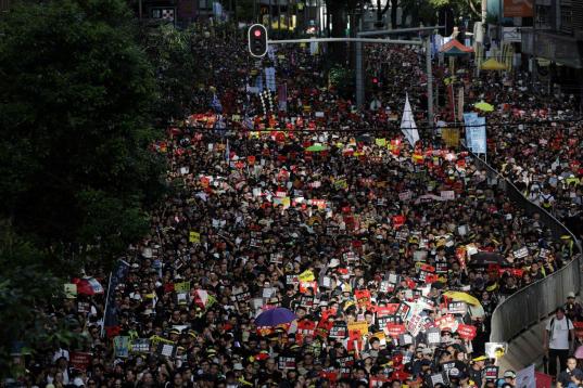 De manera organizada y pacífica, decenas de miles de manifestantes marcharon este domingo por la isla de Hong Kong, en una protesta que la policía había autorizado solo como concentración en Victoria Park, el parque más grande de la ciudad, pero que transcurrió sin incidentes.