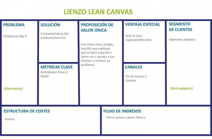 Descubre el valor diferencial y enfoca las actividades en función de ese valor. Está de moda en las aceleradoras de emprendimiento utilizar el Lienzo de Modelo de Negocio Lean Canvas para 'startups'. Es un mapa que articula diferentes elementos para poner en marcha un proyecto con menos riesgos y en función del valor que entregamos a los clientes, los problemas que ayudamos a resolver y los servicios o productos que ofrecemos.