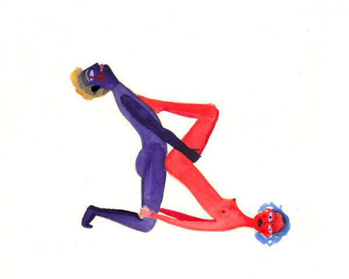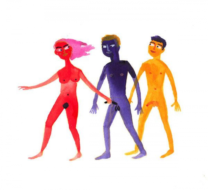 Y esa es la razón de ser de Minisutra, el nuevo enfoque descarado que ha publicado la artista austríaca Bianca Tschaikner. El libro consta de 34 acuarelas que muestran toda clase de personas en acción: parejas queer, parejas heterosexuales, tríos dirigiéndose felizmente al dormitorio... Todos están invitados a la diversión.