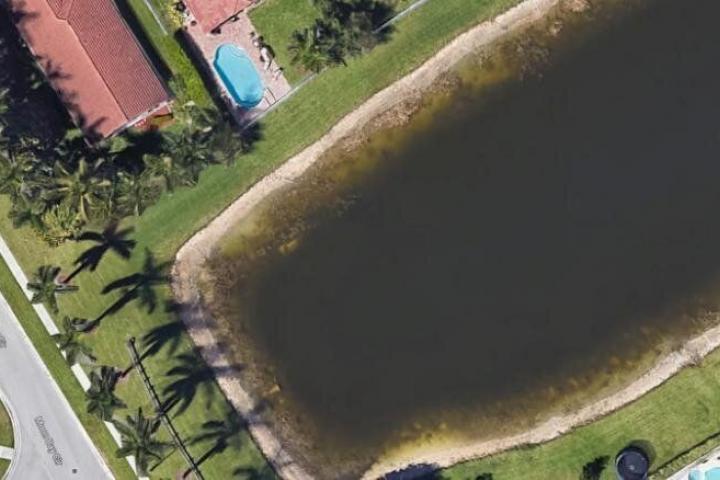Una persona que había vivido en Wellington, Florida, se puso a buscar recientemente por la zona con Google Earth. En un momento dado, vio algo raro en un estanque artificial.