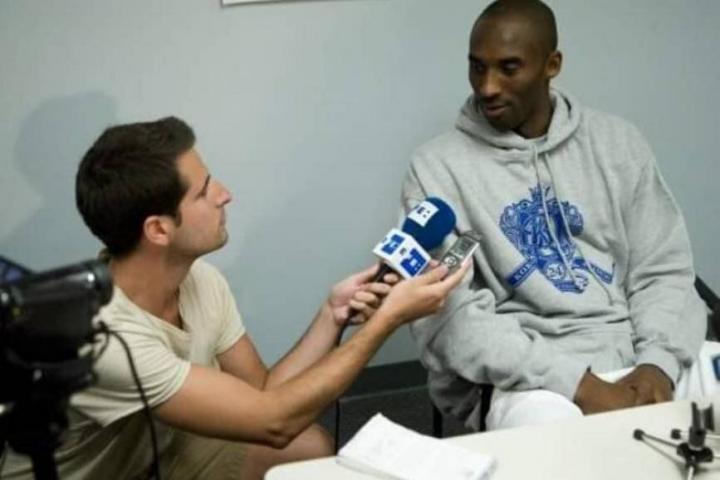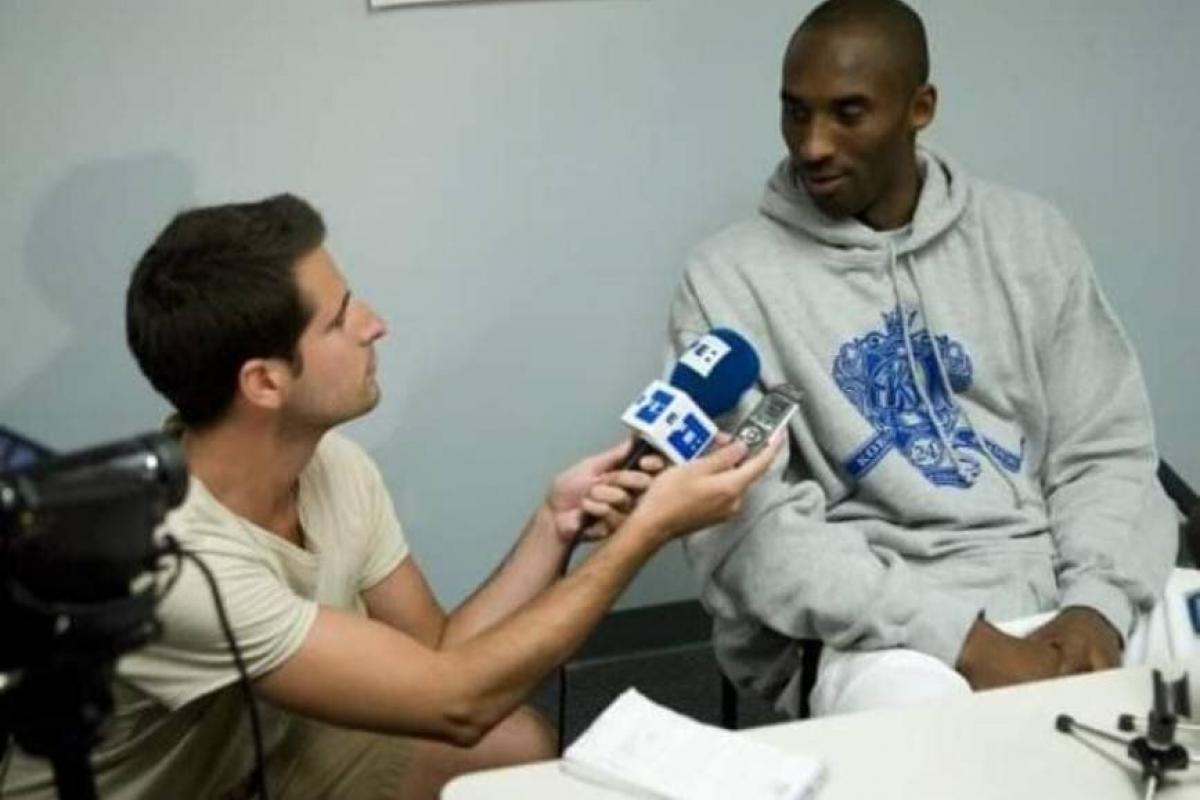 El periodista de la Agencia EFE Antonio Martín y Kobe Bryant.EFE