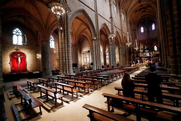La Conferencia Episcopal ha elaborado una guía de medidas para retomar la celebración del culto en las iglesias durante la desescalada: pilas de agua bendita vacías, fieles con mascarilla, mayor número de misas para evitar gran afluencia o no pasar el cestillo son algunas adaptaciones.