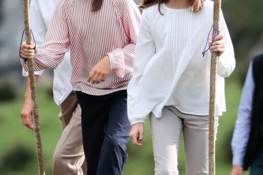 Este martes asistieron al centro Naüm del barrio de Son Roca de Palma de Mallorca con la misma coleta alta que la reina Letizia ha convertido en tendencia al llegar la nueva normalidad. Un día antes posaron en Petra con el pelo suelto y con las puntas ligeramente onduladas, un peinado con el que sorprendieron en el desfile militar del 12 de octubre de 2019 y que han repetido desde entonces en diferentes ocasiones.
