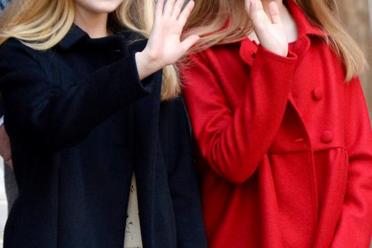 La máxima es: si lo lleva una, lo lleva la otra. Da igual que sea melena suelta lisa, ondulada, semirrecogida, con trenzas... El álbum familiar está lleno de fotos que muestran cómo han adaptado la fórmula a sus diferentes actos. Aquí van 37 ejemplos, aunque hay muchos más.