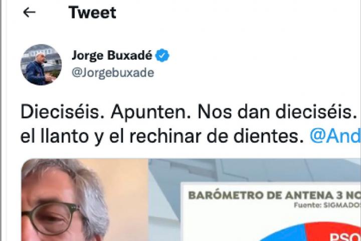 “Dieciséis. Apunten. Nos dan dieciséis. Luego, vendrá el llanto y el rechinar de dientes”, escribió Buxadé.