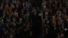 Al acabar el discurso, Leonor ha vuelto a su asiento donde las cámaras han captado un bonito momento de complicidad entre ella y su padre del que se ha percatado la experta en protocolo Patrycia Centeno.