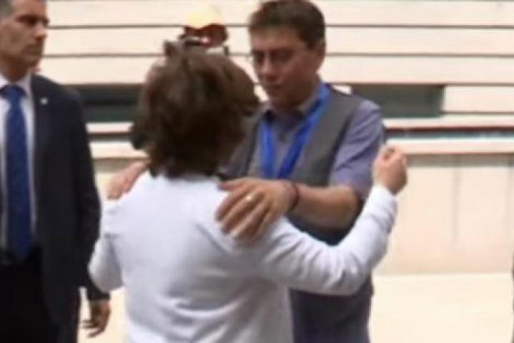 En el vídeo se observa que el fundador de Podemos pone las manos sobre los hombros de la dirigente del PP. Algo que no ha gustado nada a muchos en Twitter, donde ha recibido duras críticas: