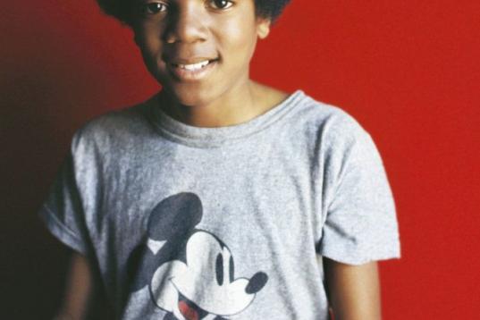 Michael Jackson, parte de los 'Jackson 5', posa para un retrato con una camiseta de Mickey Mouse.