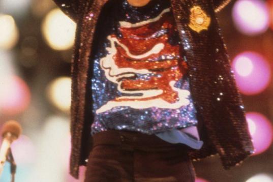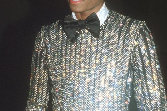 Vistiendo una camisa con lentejuelas y una pajarita en 1979.