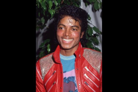 Con su mítica chaqueta de cuero rojo en el estreno del musical 'Dream Girls,' en Los Ángeles, California.