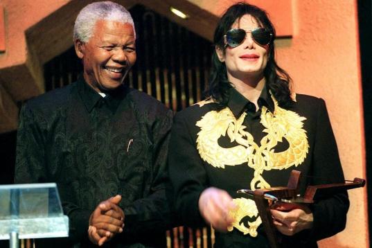 En Sun City, Sudáfrica, junto a Nelson Mandela, que le entregó un galardón por sus logros a toda una vida durante el festival Kora All Africa.