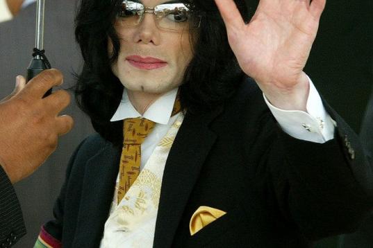 Saludando a sus fans tras el juicio por abusos a menores en la corte de Santa Bárbara, California.