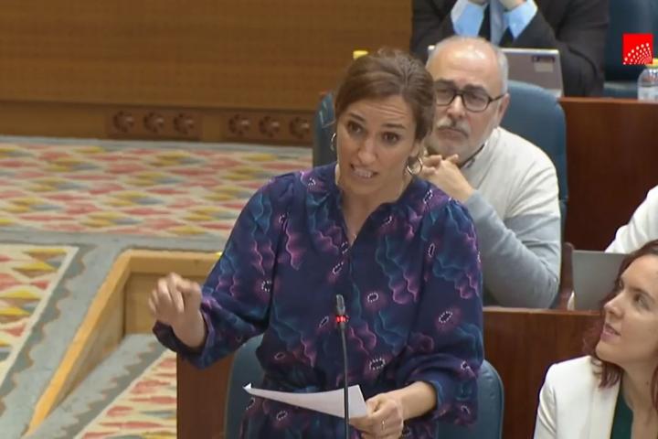 La diputada de Más Madrid ha reprochado a Ayuso que “llamen vagos a quienes reciben una ayuda para comer carne o pescado una vez a la semana” y, mientras tanto, ensalzan “a aquellos que van del carrito de golf al palco, del palco al Lamborghini”.