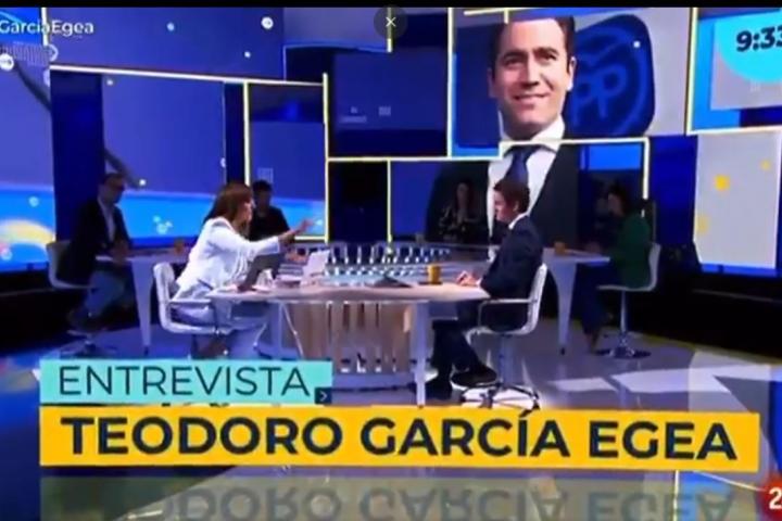 López entrevistaba al dirigente ‘popular’ y cometió el error justo al inicio, cuando le estaba presentando. “Teodoro García Egea, secretario general de Podemos”, dijo. Y se dio cuenta al instante de su error: ”¡Ay de Podemos! ¡Del Partido Popular!”.
