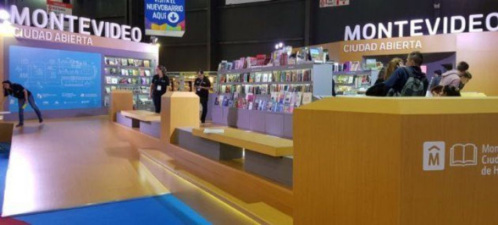 Al fondo de tres estanterías de libros un nombre en letras blancas que se ve en el horizonte: Montevideo, ciudad abierta. Bajo sus pies las estanterías, un pequeño escenario con una pantalla, unas mesas altas y una gran rampa de madera que conduce a esta pequeña ciudad literaria recogida en una réplica de la Rambla Montevideana. Aquí en 200 metros cuadros, allá, una avenida de 22 kilómetros, a la orilla del Río de la Plata, construida desde 1887. Es un ícono de esta ciudad y vista como un eje democrático por ser el lugar de encuentro de personas de diferentes sectores sociales, propios y turistas.