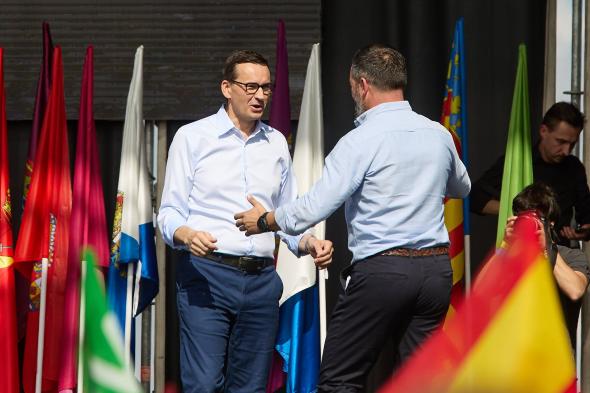 A pesar de ese intento de mostrar un gran respaldo internacional, sólo un alto dirigente representativo de la ultraderecha viajó hasta España para intervenir presencialmente en el acto de Madrid. No fue sorpresa que se tratara del primer ministro de Polonia, Mateusz Morawiecki. De hecho, el líder polaco es uno de los principales aliados internacional de Abascal, con quien ya ha compartido numerosos encuentros bilaterales y cumbres de partidos conservadores.