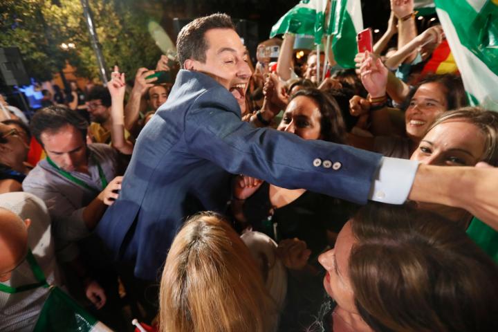 Un resultado histórico. Sin precedentes. El PP, con Juanma Moreno a la cabeza, ha arrasado en las elecciones andaluzas, con 58 escaños. Los votantes del sur han dictado sentencia y optado por una derecha de corte moderado. Ha surtido efecto la llamada de los populares para lograr esa mayoría absoluta y no tener que meter a Macarena Olona en el Gobierno de la Junta.