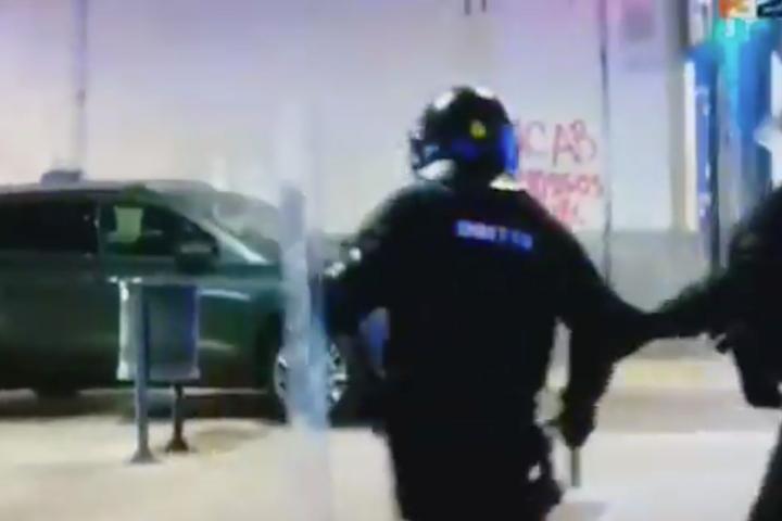 Uno de los agentes se encontraba haciendo indicaciones al conductor del vehículo cuando, para su sorpresa y la de los que estaban viendo las imágenes, uno de sus compañeros se ha acercado corriendo y ha golpeado con la porra el coche.