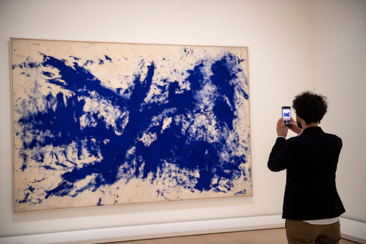 Yves Klein, conocido por su “azul Klein”, tiene una de sus obras más reconocidas en el Museo Guggenheim. Precisamente utiliza este color y lo que él llamaba “pinceles humanos”. Klein, en su corta carrera de siete años como artista, no quiso utilizar pinceles, sino que en un primer momento utilizó rodillos que consideraba “más impersonales”. Pero posteriormente los cambió por esos modelos a los que él mismo dirigía para que se moviesen por el lienzo creando distintos trazos indistinguibles como si fueran trazos expresionistas.