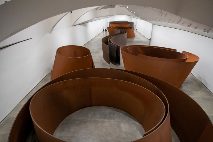 Esta instalación en una de las salas del museo es de las más imponentes del Guggenheim. El visitante recorre una serie de esculturas de acero de Serra que van de elipses a espirales que hacen que la sensación de movimiento impregne tanto las propias obras como el visitante que se mueve a través de ellas y el espacio que las rodea. Las formas, las proporciones y la distribución de los elementos provocan que el visitante se vea rodeado de “imprevistos”, cambios de tamaño y de forma inesperados que lo envuelven totalmente en el espacio-tiempo.