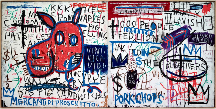 Esta obra, como otras del francés, muestra el lienzo como si fuera una pizarra en la que incluye garabatos, dibujos y signos que se entremezclan dando una imagen entre caótica e hipnotizante. El título viene de una de las inscripciones sobre el burro rojo, que es el elemento central de la pintura. “El humor, la ironía y el primitivismo definen esta representativa pintura llena de fuerza”, señalan en el museo.
