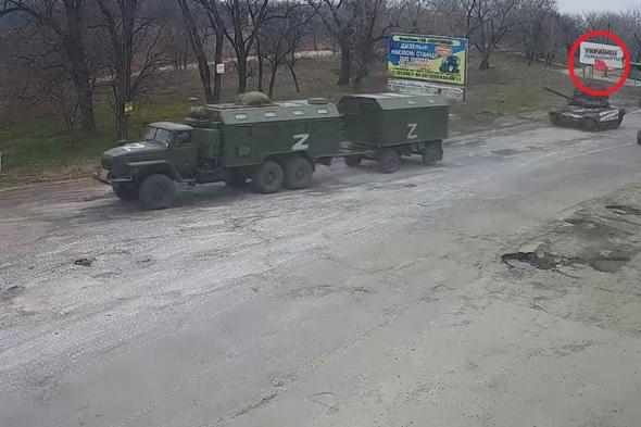 Un tanque ruso llama la atención en su paso por Ucrania: todo por la bandera que lleva