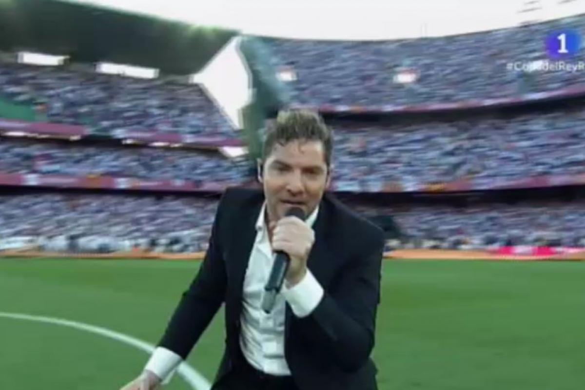 Bisbal se ha convertido en tendencia en España después de su actuación en la final de la Copa del Rey, que enfrenta al Barcelona y al Valencia en el estadio Benito Villamarín, campo del Betis.