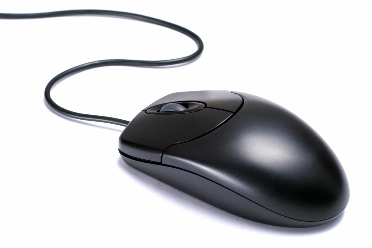La primera maqueta de ratón fue construida en madera y disponía de dos ruedas metálicas que, al desplazarse, movían dos ejes: uno para controlar el movimiento vertical del cursor en pantalla y el otro para el sentido horizontal, además de un botón rojo en su parte superior.