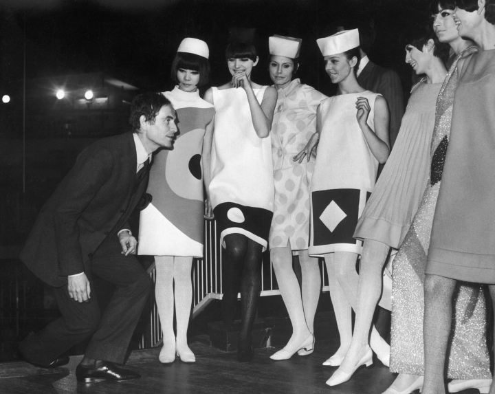 Pierre Cardin con varias modelos tras un desfile en 1966. Gamma-Keystone via Getty Images