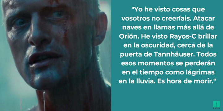 Precisamente en esa película de Ridley Scott, el actor pronunció uno de los monólogos más famosos de la historia del cine, conocido como Lágrimas en la Lluvia.