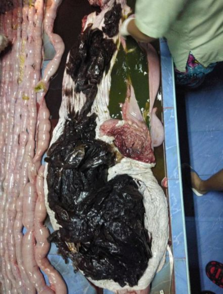 Según informó el departamento de Recursos Costeros y Marinos en su página web, la autopsia reveló que tenía alojadas en el estómago 80 bolsas de plástico, con un peso de ocho kilos. Greenpeace ha denunciado que ocho millones de toneladas de basura van a parar todos años a los océanos.