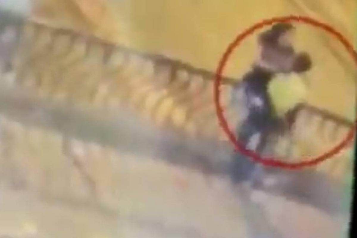 En un momento dado, la joven envuelve con sus piernas a su pareja, sentada en la barandilla metálica. El hombre, desequilibrado, no puede sostener a la mujer y ambos caen al vacío desde una altura de 15 metros.