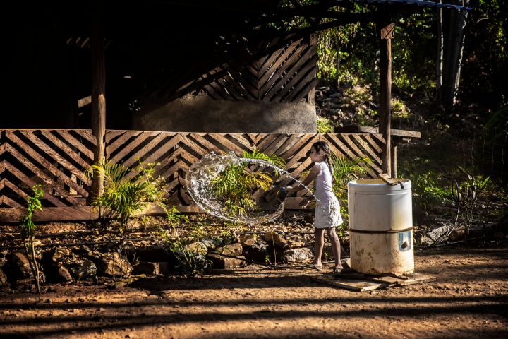 “Cuando atacaron el pueblo, nos quedamos en casa, sin salir, sobrevivimos con lo que teníamos, con lo que cultivamos. Mucha gente se ha ido, por miedo o por estar involucrada. Da miedo, sobre todo por los niños, porque les puedan hacer daño”, dice Elvira, que llegó al pueblo hace 20 años. Como otras mujeres ella también acompaña a su marido al campo. “Una siente que acompañándolos les protege”.