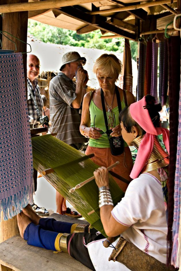 Poco tardaron las agencias de viajes, los gobiernos y la codicia de su propia tribu en ver un filón económico en la exhibición de las Padaung, a partir de ese momento rebautizadas como Mujeres Jirafa.