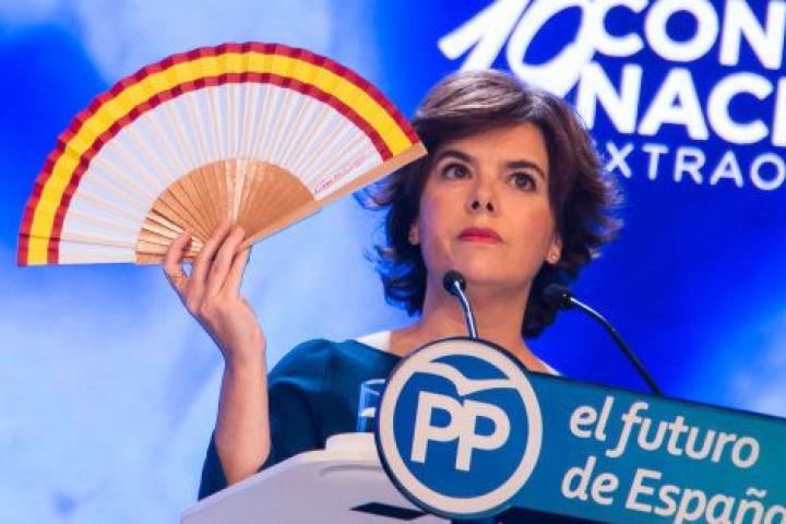 Soraya Sáenz de Santamaría ha protagonizado uno de los momentos del Congreso del PP al sacar un abanico con la bandera de España durante su discurso.