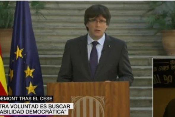 El presidente de la Generalitat, Carles Puigdemont, ha pedido a los catalanes, tras cesarle el Gobierno central, defender la declaración de independencia aprobada en el Parlament y hacerlo con civismo, con "la oposición democrática a la aplicación del artículo 155" de la Constitución en un discurso emitido por TV3 a las 14:30.