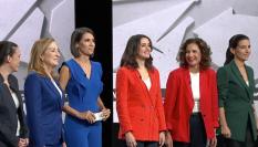 Irene Montero, Ana Pastor (PP), Ana Pastor (moderadora), Inés Arrimadas, María Jesús Montero y Rocío Monasterio
